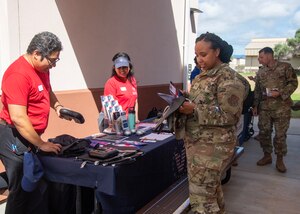 June 7, 2023 624th RSG hosts mental health resource fair Staff Sgt. Savia Anderson, a dental technician with the 624th Aeromedical Staging Squadron, grabbed a couple of squishy stress balls and pamphlets from a stand during a mental health and resiliency fair held here June 2, 2023.